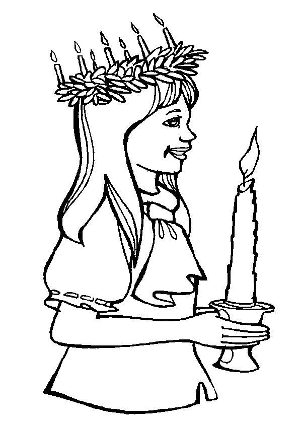 La fête marque le début de la saison de Noël. Ce jour-là, des jeunes filles défilent dans les rues vêtues de longues robes blanches, et portant une coiffe de bougies en référence à cette martyre chrétienne qui s’éclairait ainsi pour apporter à manger en cachette aux chrétiens, persécutés à cette époque. Cliquez pour imprimer un coloriage…